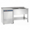 Ideal for catering professionals and the HORECA sector, this Laundry Sink with a depth of 700 mm includes a 40 mm backsplash and a lower shelf. Made of stainless steel with a Scotch-Brite finish, it is equipped with two tubs and a left drainer.