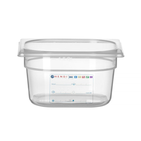This Gastronorm Storage Box size GN 1/6 allows for airtight closure. It does not absorb flavors or odors of the food it contains. Made of polypropylene, it can withstand temperatures ranging from -40°C to +80°C. It comes with a durable label to write information about the stored food.
